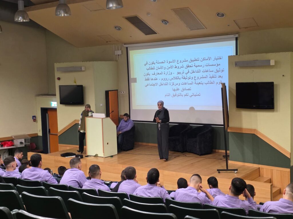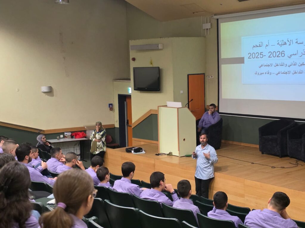 ومن هذا المنطلق أيضا تم استضافة السيّدة ايمان اغبارية مديرة وحدة التّطوع قسم الشبيبة في المركز الجماهيري – أم الفحم من أجل كشف الطلاب على نظم العمل التّطوعي، والمراكز والمؤسسات الرسميّة التي يُسمح فيها بالتّطوع، بحيث أكدّت على أهميّة فكرة الشراكة بين المركز الجماهيري والمدرسة “الأهليّة” كرافعة للارتقاء في هذا المجال.